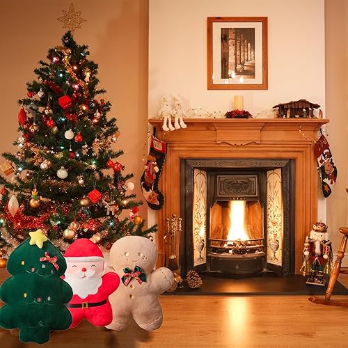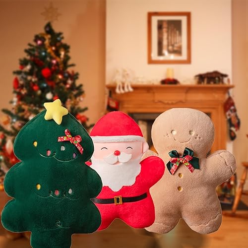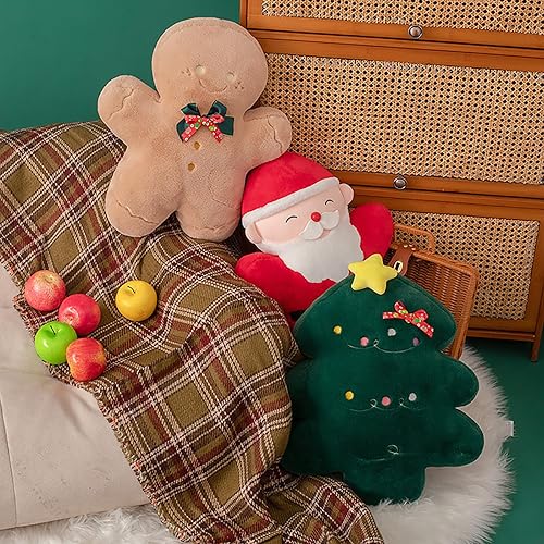 JINGTOPS Oreiller en Peluche de Noël - 45 cm en Forme d'Arbre, Coussin Bonhomme en Pain D'épice, Jouet (Sapin de Noël)