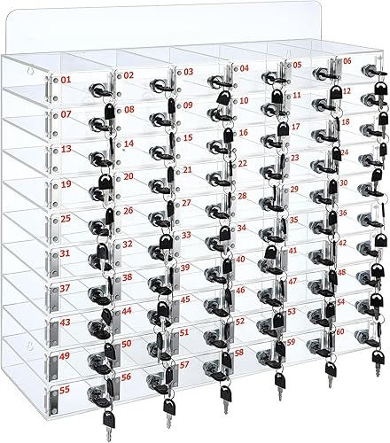 Dtyubfg Casier de Rangement pour Téléphone Portable 60 Emplacements Cabine Verrouillable pour Téléphone en Acrylique - Armoire de Rangement pour Téléphone avec Clés Salle de Réunion Classe