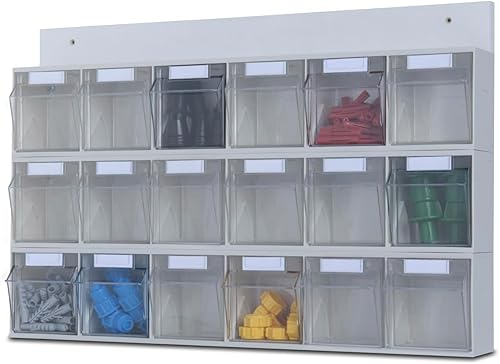 Hünersdorff 461118 MultiStore Ensemble mural 18 tiroirs, Transparent/gris Clair