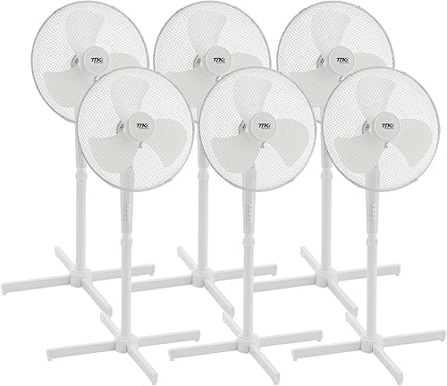 BURI Lot de 6 ventilateurs sur pied silencieux - 57 dB - Hauteur réglable de 105 à 122 cm - 3 niveaux - Oscillation à 80 ° - Diamètre : 40 cm - Économie d'énergie - Angle d'inclinaison réglable