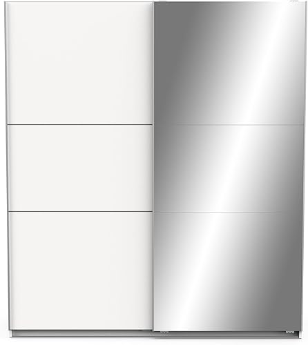 Demeyere Armoire Porte Coulissante avec Miroir & Penderie Moderne – Coloris Blanc Mat & Finitions Métal - 178,1 x 59,9 x 203 cm