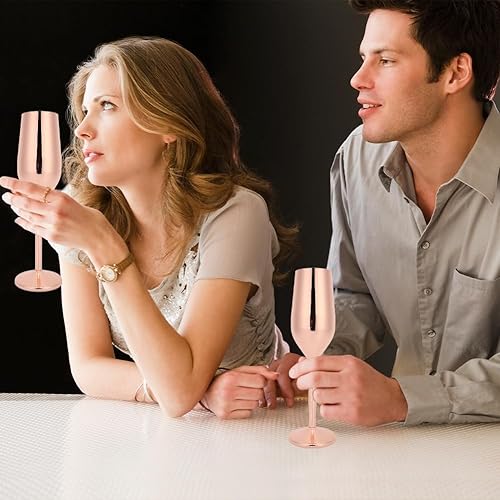 220 ml flûtes champagne acier inoxydable gobelets incassables verres vin incassables verres pied brossés tasse piscine extérieure fête mariage grillage verres pour cocktails(or rose)