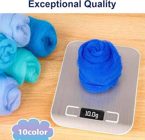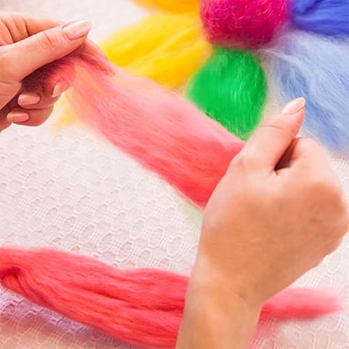 YOYEAH Lot de laine à feutrer | 10 g x 10 couleurs | Laine de mouton pour feutrage – Feutrage aiguilleté, feutrage à sec et feutre humide possible | Laine à feutrer naturelle pour débutants,