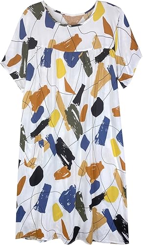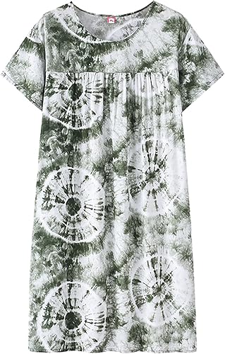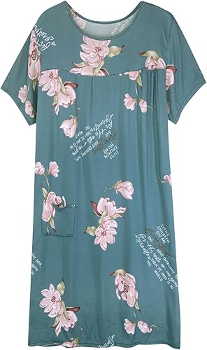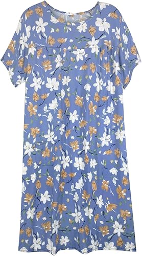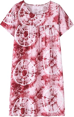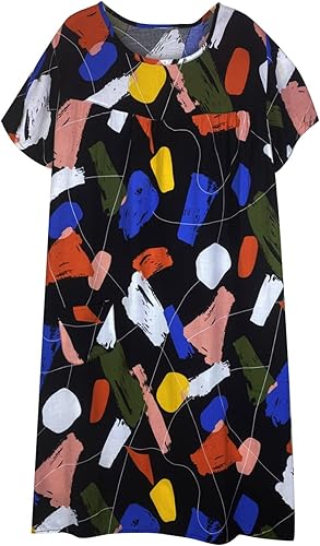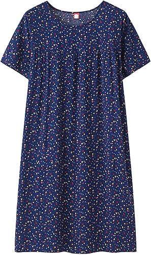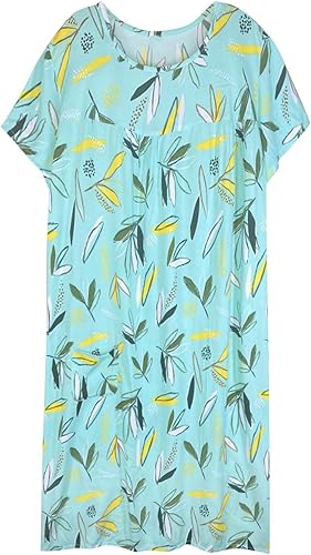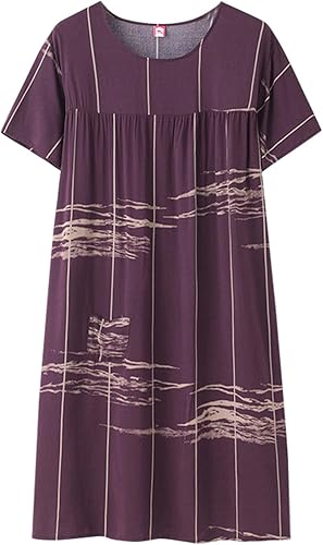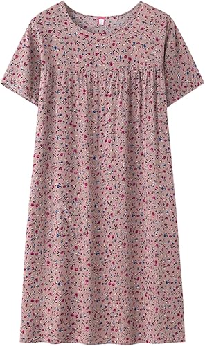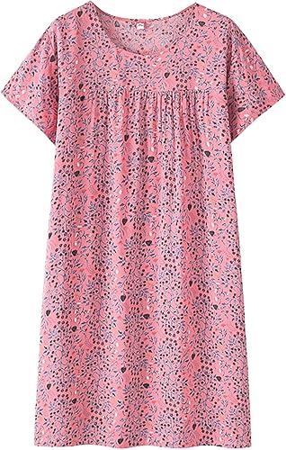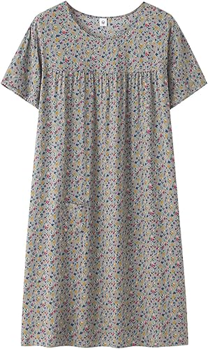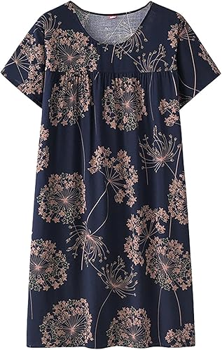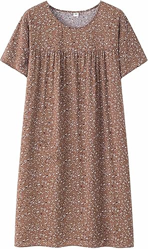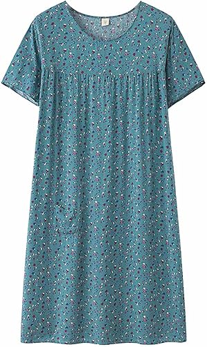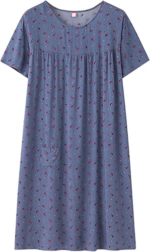 Chemise de nuit à manches courtes en coton pour femme - Col rond - Robe de plage - Pour les personnes âgées - Douce - Nuisette d'été - Lounge - Chemise de nuit d'été ample