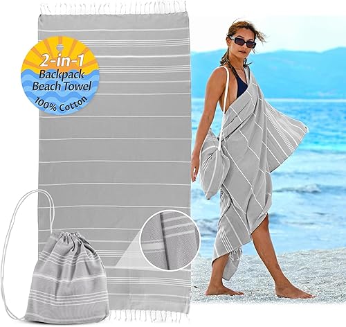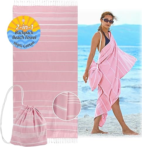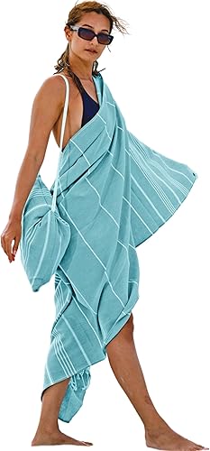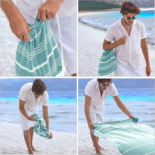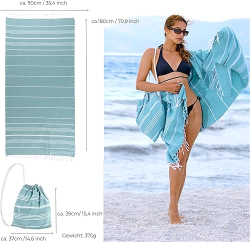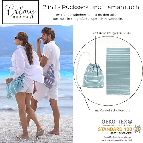 CalmyBEACH Serviette de hammam - Sac à dos - Serviette de plage - 100 % coton - 180 x 90 cm - Pour homme et femme - Serviette de yoga - Serviette de voyage (menthe)