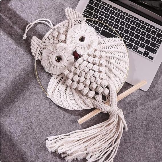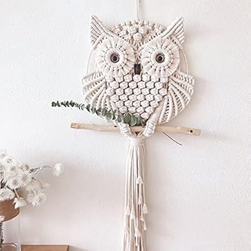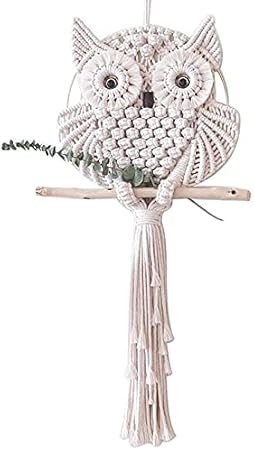 Tapisserie murale hibou - 15 x 45 cm - En macramé - Décoration murale - Style bohème - Motif hibou - Attrape-rêves - Décoration murale pour bureau, salon, chambre à coucher, chambre d'enfant