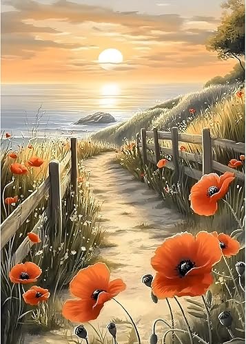 MXJSUA Diamond Painting Kit pour Adulte Débutant, Fleur de Mer 5D Diamant Painting Images Ronde Diamond Peinture Diamant Adulte, Cristal Débutant Art Set pour Décoration Murale Maison 30x40cm