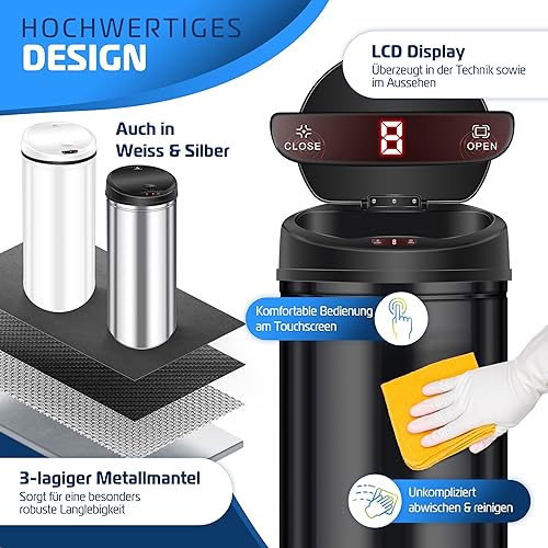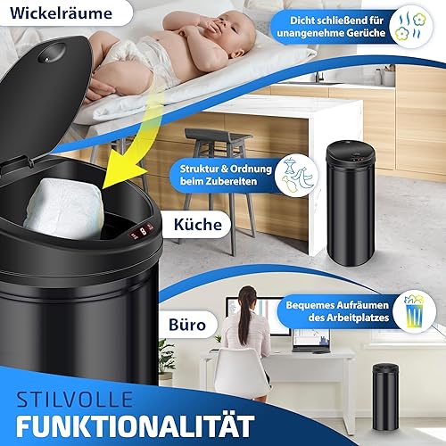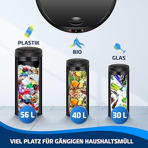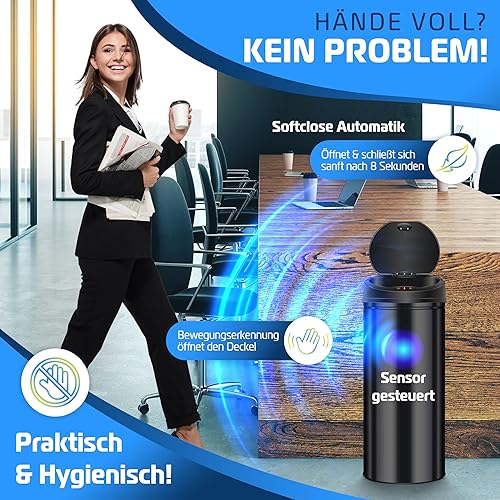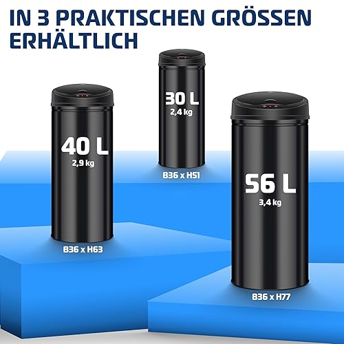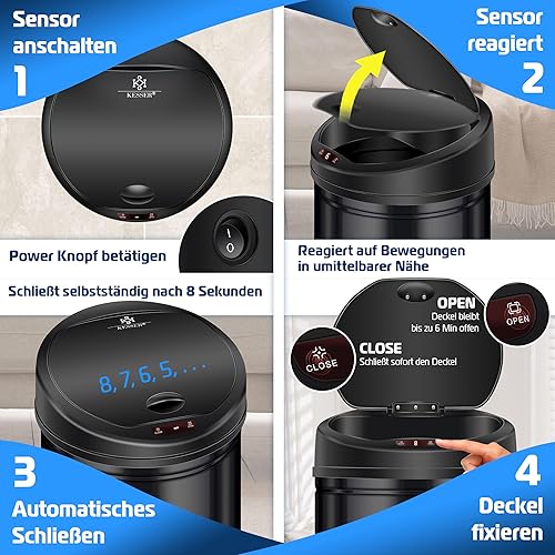KESSER® Poubelle à capteur ✓ Automatique ✓ Poubelle ✓ Déchets | Acier Inoxydable | Couleur : Noir | Dimensions : 30 L
