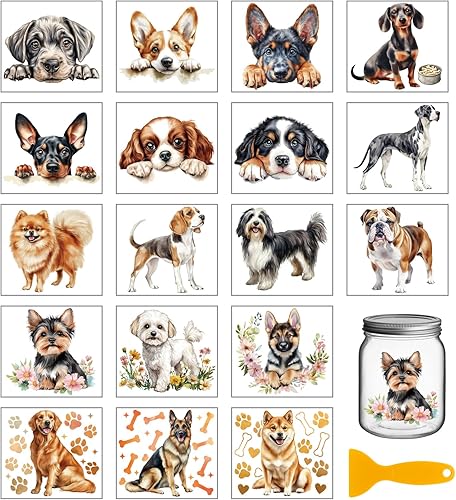 GLOBLELAND 18 Feuilles de Stickers de Transfert de Chien Mignon 3.9x3.6 pouces Autocollant de Transfert Coloré de Chiot pour Meubles Vase Verre Art Artisanal et Décorations