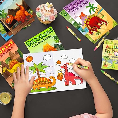12 pcs mini livres de coloriage set en vrac de stylos pour remplir les sacs de fête petits livres d'activités avec dinosaures thèmes favors birthday goodies supplies