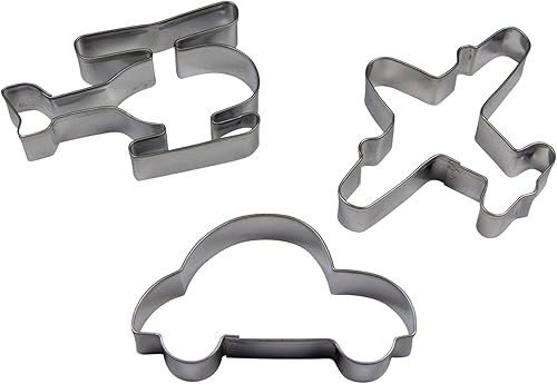 BekkiB - Lot de 3 emporte-pièces « voiture, avion et hélicoptère » – Emporte-pièces en acier inoxydable compatibles lave-vaisselle – Pour la cuisson des biscuits – 7771