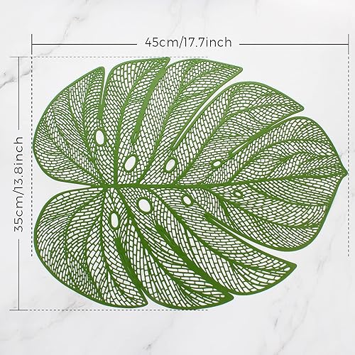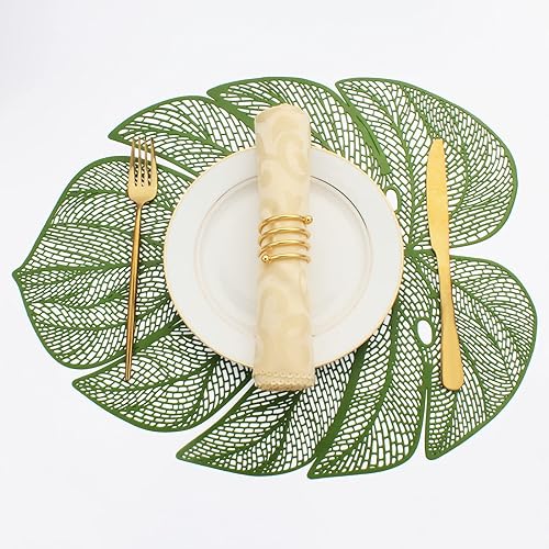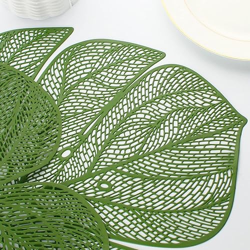 Evevda Lot de 4 sets de table en vinyle en forme de feuille verte pour table de salle à manger, lot de 6 sets de table en plastique métallique faciles à nettoyer pour mariage, annersaire, dîner,