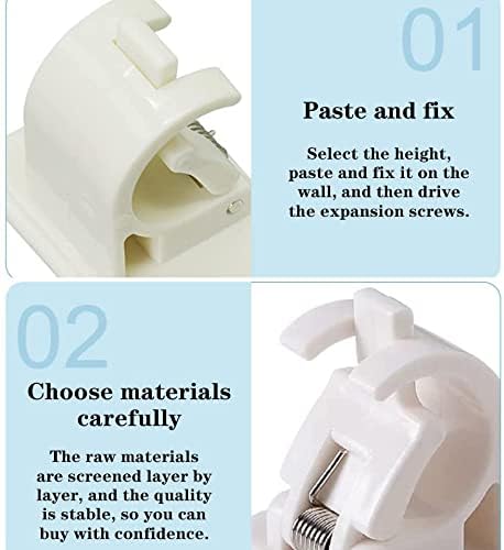 Drglynh Lot De 8 Crochets Support De Tringle à Rideau Auto-AdhéSif, clips d'anneau mural sans perçage support de tringle de fixation, tringle à rideau réglable 8 Pcs