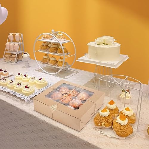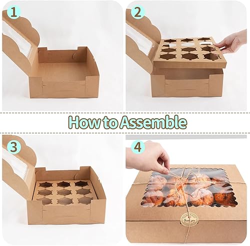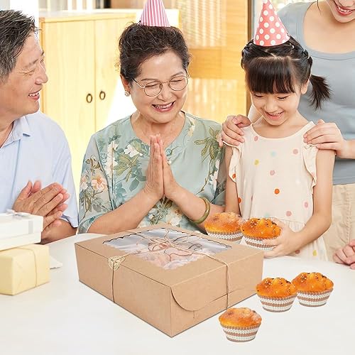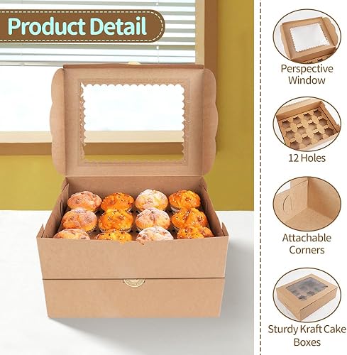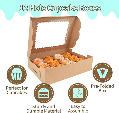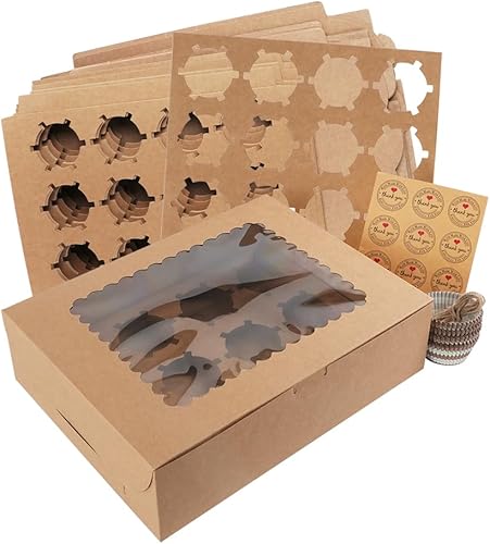 MOAMUN 12 Boîtes Cupcakes 12 Trous avec 100 Caissettes Cupcake, Autocollants et Cordes, Boite Gateau Kraft Boite a Gateau Carton avec Fenêtre, Boite Gateau Carton pour gâteaux Muffins Pâtisseries