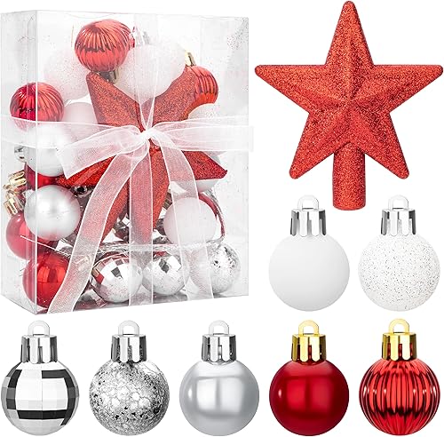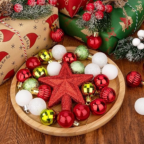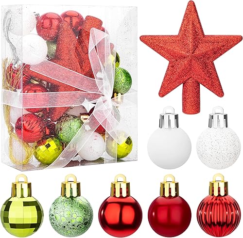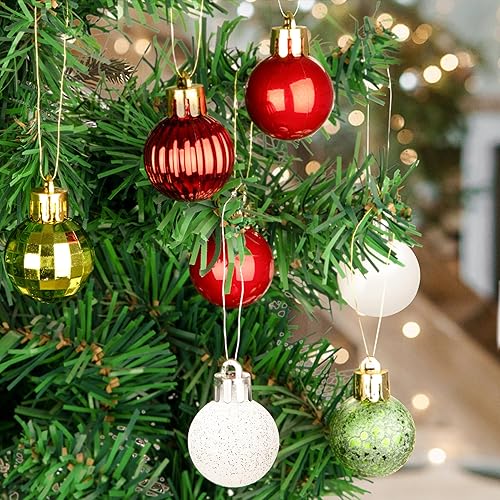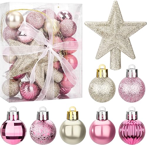 Boules de Noël, 30 Pcs Décorations d'arbre de Noël, Mini Boules Sapin de Noel en Plastique, Colorées Ornements pour Decoration Noel Extérieur ou Intérieure, Fête, Mariage (Blanc Or Rose)