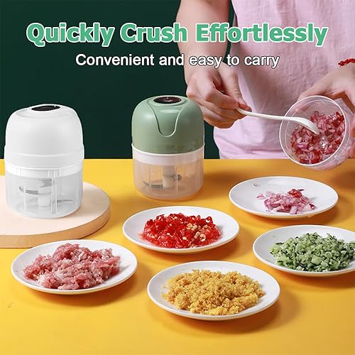 Mini hachoir à ail, portable, électrique, chargement USB, pour légumes, ail, poivre, oignons, épices, noix, viande (250 ml)