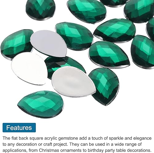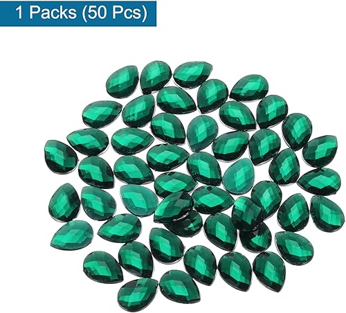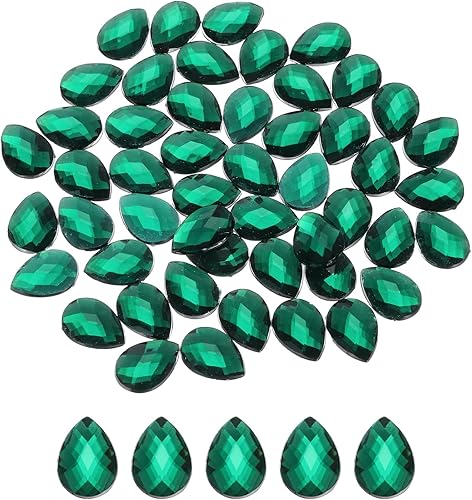 QUARKZMAN 50Pcs Pierres Précieuses en Acrylique en Forme de Gouttes à Dos Plat 18x25mm pour l'Artisanat, les Perles, les Mariages et la Fabrication de Bijoux - Vert Foncé