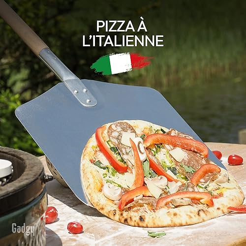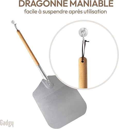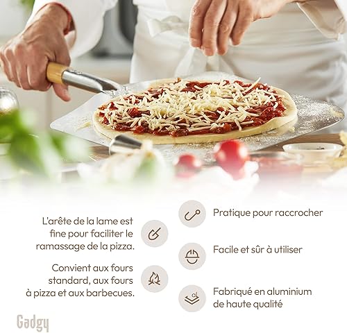 Gadgy Pelle à pizza Pousse-pizza pour four en pierre 79 x 31 cm. - Spatule à pizza, à tarte, à four et à grill en métal et manche en bois - Pizza Turner - Accessoires pour fours - Slider polyvalent