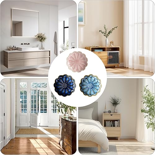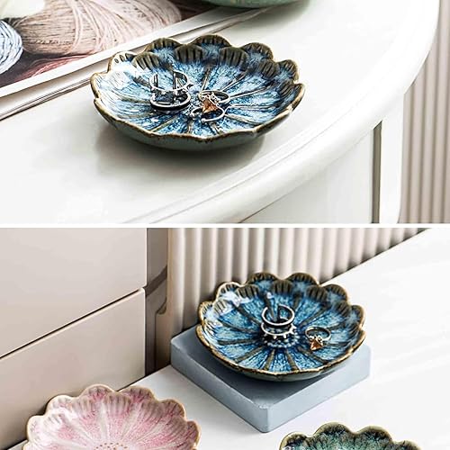 FENGQQKJ Lot de 3 plateaux à bijoux en céramique - Motif fleurs - Plateau décoratif en porcelaine - Pour bagues, boucles d'oreilles, colliers, rouges à lèvres - Rose et blanc