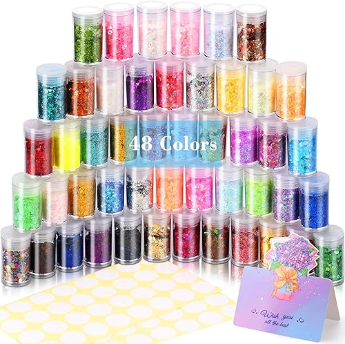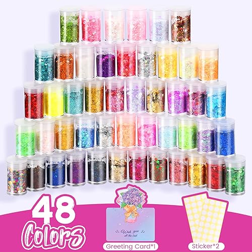 UCAMP Paillettes 48 Couleur Poudre,Poudre Brillante,Paillettes Fines pour Art & Craft,Glitter Fines pour Ongles Nail Art,Corps,Maquillage,Les Loisirs Créatifs,Poudre Pailletée