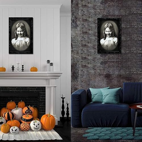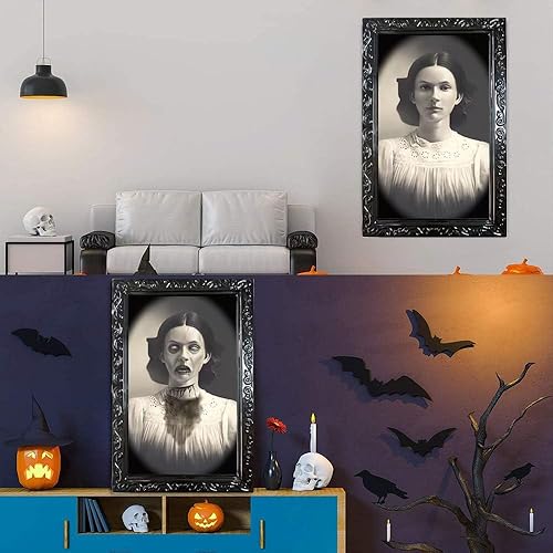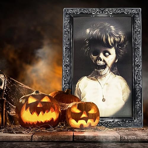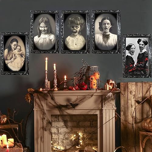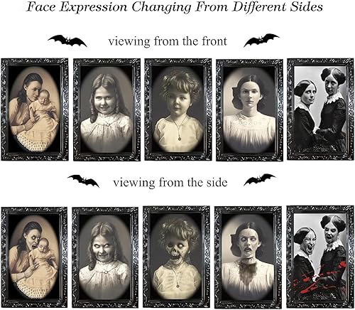5 Pièces Décorations de Portraits d'horreur d'Halloween, 3D Changement d'expression Faciale Portrait Cadre Photo en Mouvement Idéal pour Fête de l'horreur, Château, Décoration de Maison Hantée