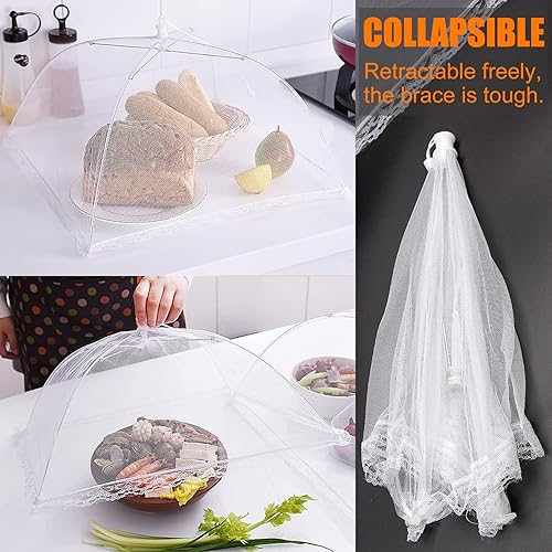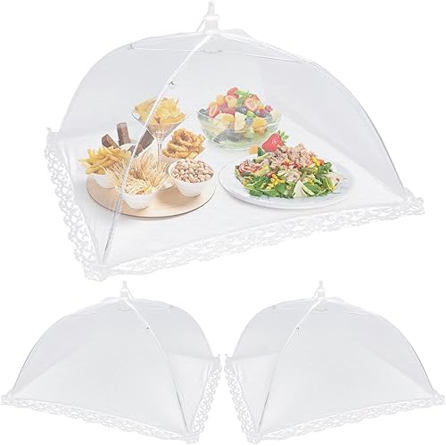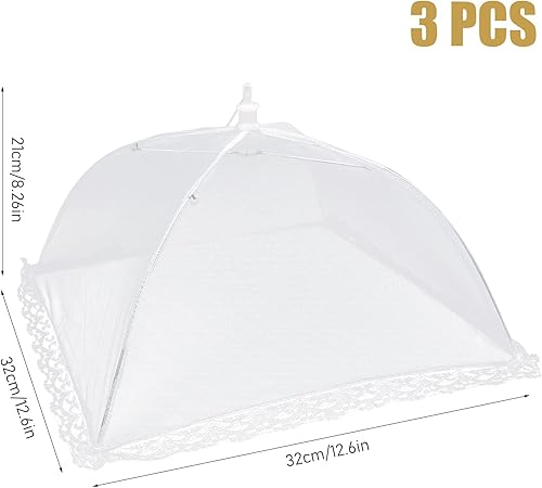 3PCS Large Couverture de Nourriture,32 x 32 cm,Cloche Alimentaire Pliable,Pop-up Anti-Mouches en Maille Pliables,réutilisable,pour Barbecue Pique-nique Aliments (blanc)