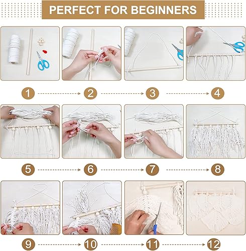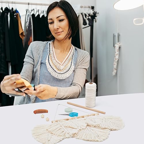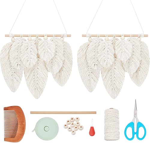 FREEBLOSS 2 Ensembles Kit de Bricolage en Plumes de Macramé Cordon de Macramé de 100M et 20 Perles en Bois, Boho Macramé Tenture Murale Decor Fait À La Main Cadeau pour Maman