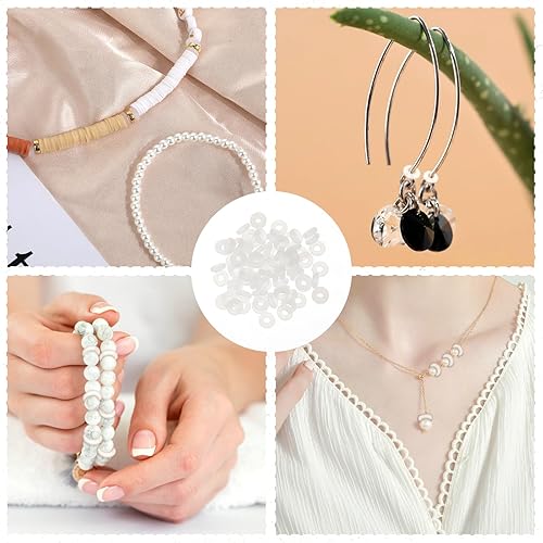 Lot de 300 anneaux d'espacement en caoutchouc antidérapant en silicone transparent pour bracelet, collier, accessoires de fabrication de bijoux, avec 1 pince à épiler