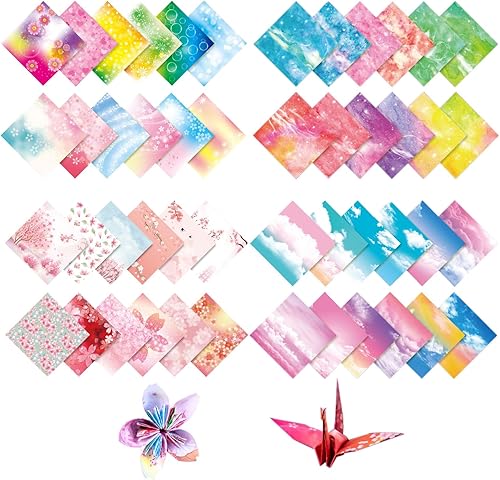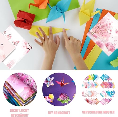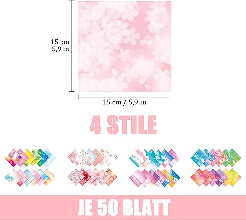 Papier Origami, 200 Feuilles Papier Pliant Carré Double Face, 15 x 15 cm Papier Couleur Carre pour l'art du bricolage et des projets d'artisanat, Motif à Fleurs