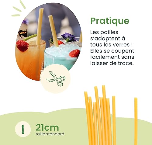10 Paquets de 25 pailles en pâte Payapâte - 250 Pailles Comestibles et écologiques - Fabriquées avec des ingrédients naturels - Parfait pour vos cocktails