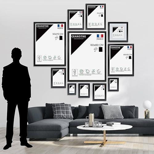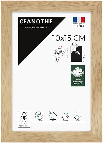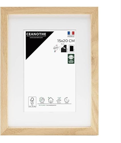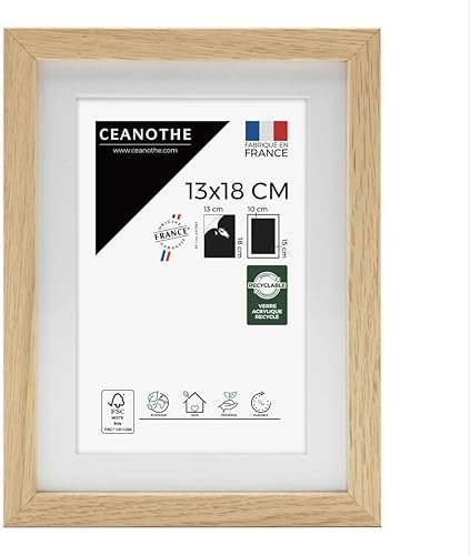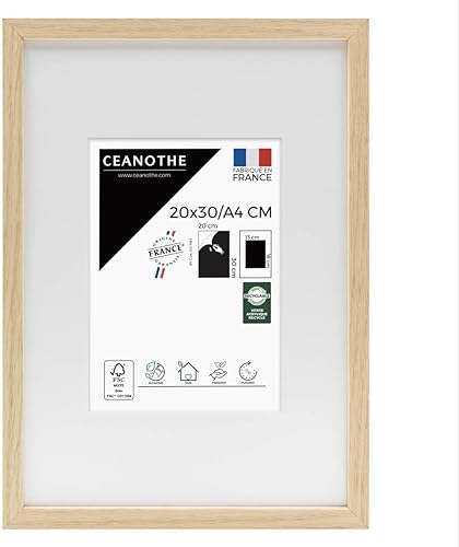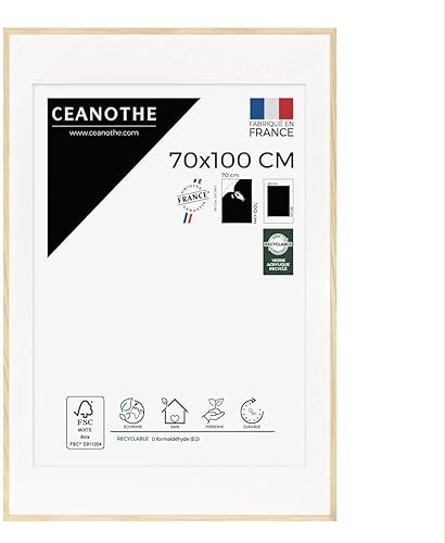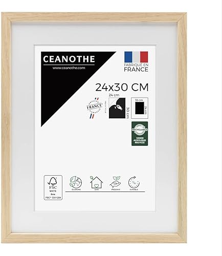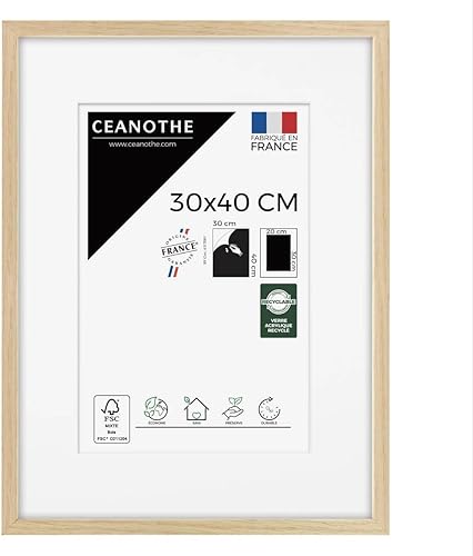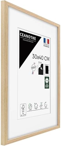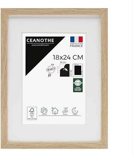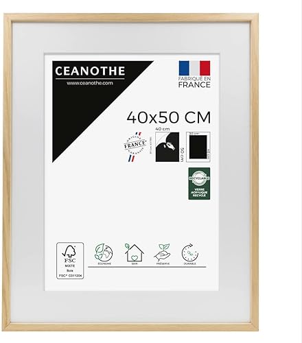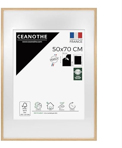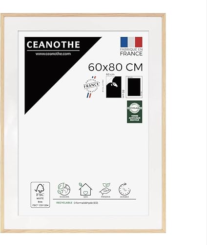 Ceanothe Cadre Photo Bois Chêne 60x80 cm avec Passe-Partout 50x70 cm - Bois Naturel FSC pour A2 et Affiche Poster - Verre Acrylique Incassable Collection Alba - Fabriqué en France
