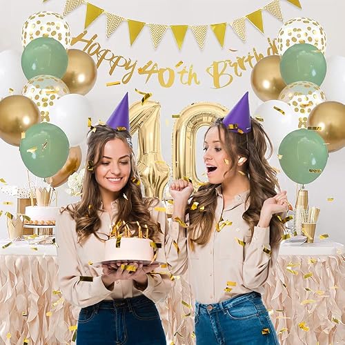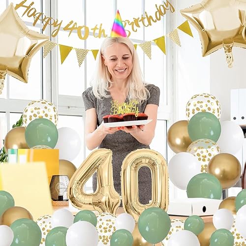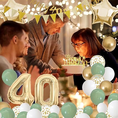 SenaiMy Decoration Anniversaire 40 Ans Ballons Anniversaire Vert Or et Blanc Happy Birthday Banderole Joyeux Kit Deco pour 40 Ans Femme Homme
