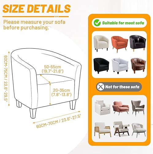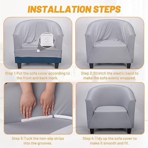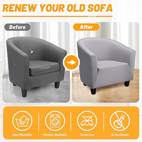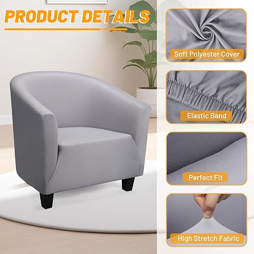 Segus Housse de Fauteuil Extensible, 1 Pièce Housse Fauteuil Cabriolet, Protecteur de Tub Chair, Lavable et Amovible, pour Club, Bar, Café, Bureau (Gris Clair, Polyester)