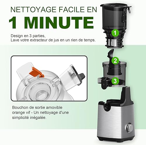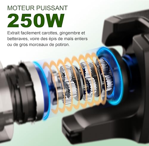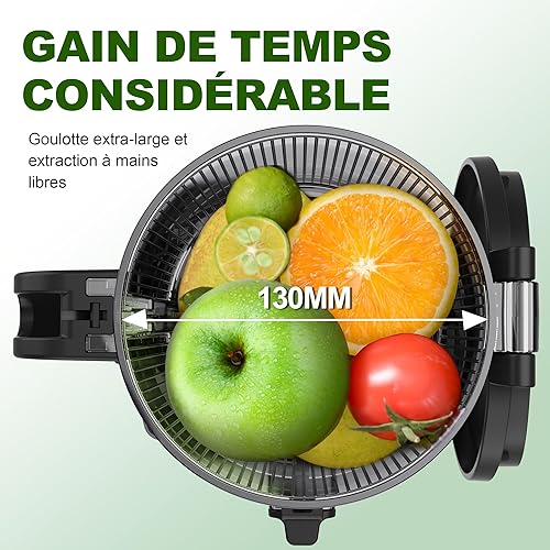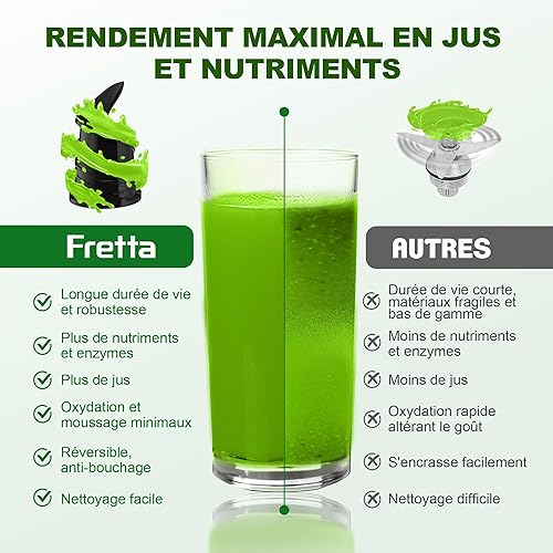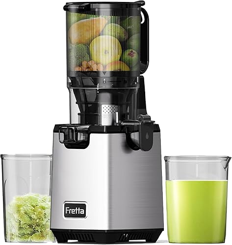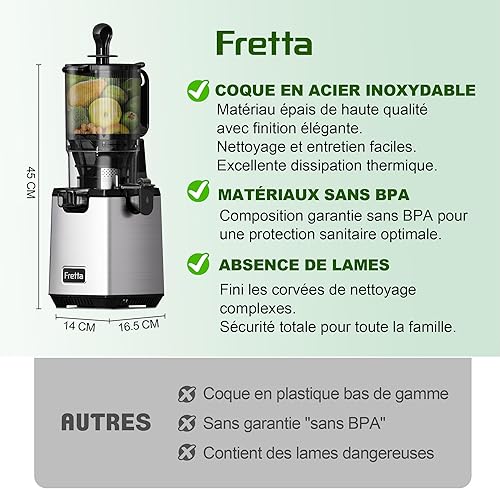 Fretta Extracteur de Jus Professionnel à Mastication Lente - Grande Goulotte 135mm - 250W Moteur Puissant - Pour Fruits Entiers et Légumes - Facile à Nettoyer - Sans BPA - Acier Inoxydable - Silencieu