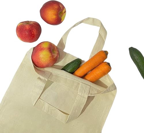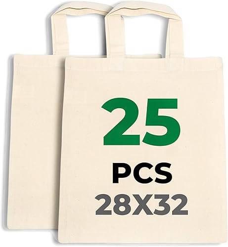 LYRVON Sac en coton de qualité supérieure à peindre et à colorier, sac en tissu avec poignées courtes, non imprimé ou imprimé, sac cadeau, sac en toile de jute, petit sac en toile de jute, certifié