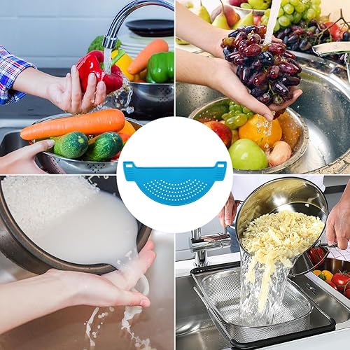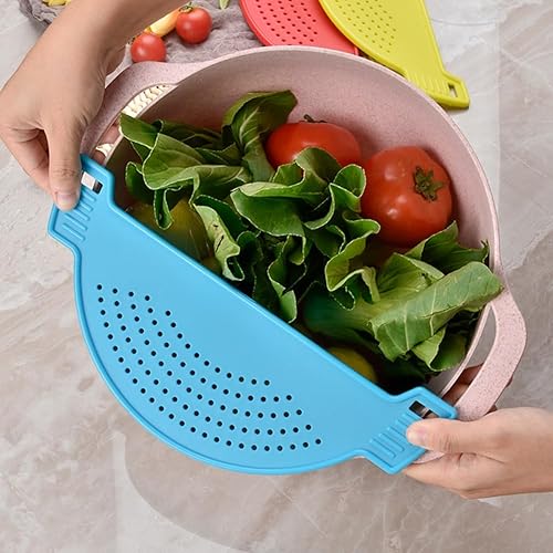 Égouttoir,Passoire Pates,Passoires Alimentaires,Passoire Pates,Filtre de Cuisine,Passoire pour Marmites,Passoire en Forme de Demi Lune,Égouttoir de Cuisine en Plastique,Aide au Drainage Bleu Tokaneit