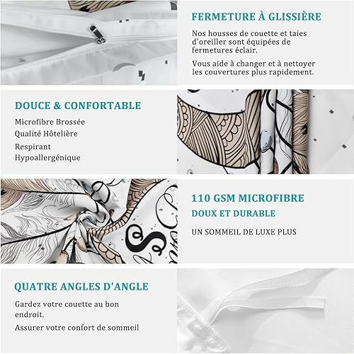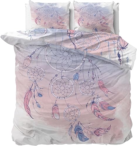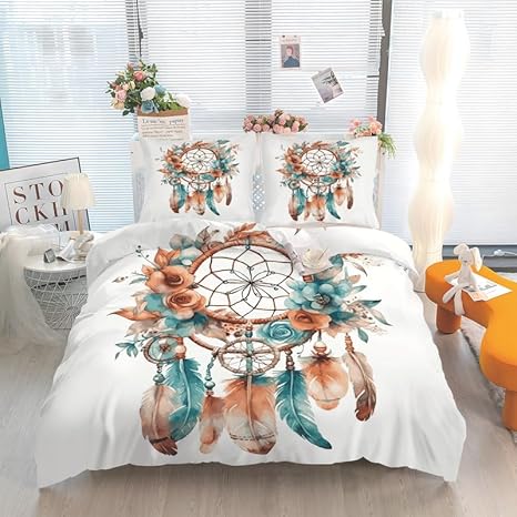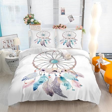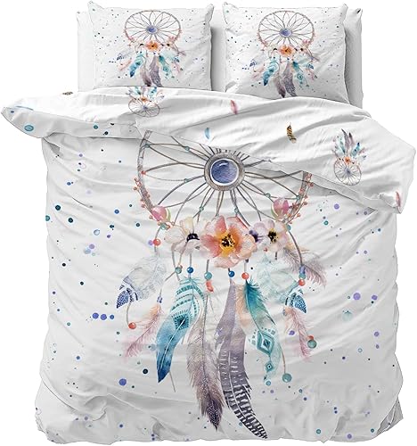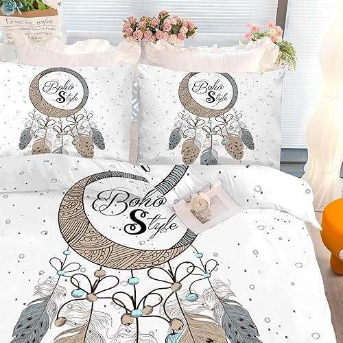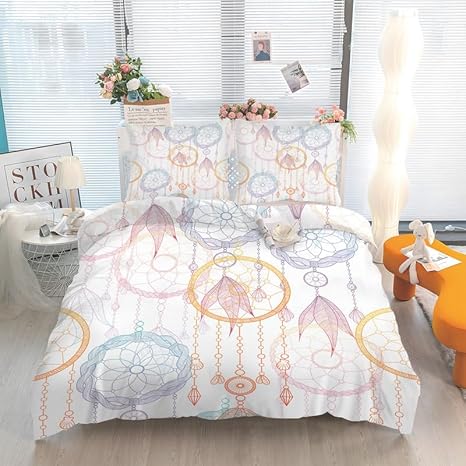 Linfye Housse de Couette 140x200 Enfant Attrapeur de rêves Parure de lit 1 Personne Imprimée Microfibre Housse Couette avec Fermeture Éclair + 2 Taie d'oreiller 65x65cm
