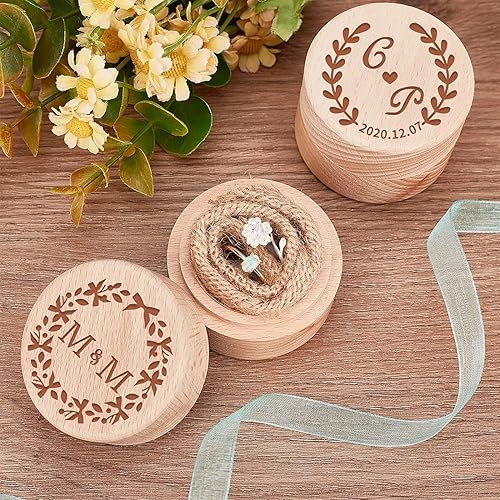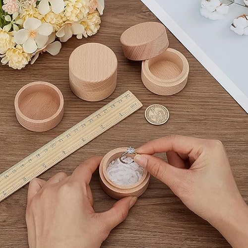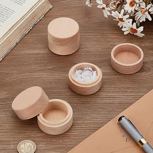 FINGERINSPIRE 3Pcs 5.2x4.05cm/Diameter x High Mini Ronde Boîte en Bois Petite Boîte De Rangement en Bois Bague De Mariage Boîtes À Bijoux DIY De Stockage Bibelot Porte-Conteneur Cas