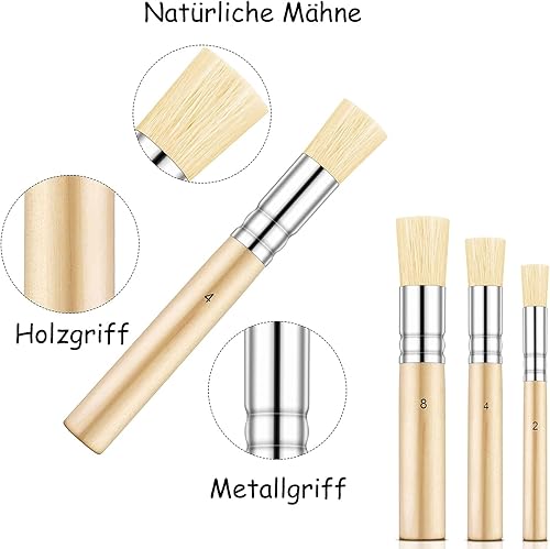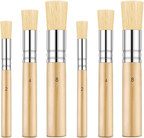 Pinceau de Pochoir, Brosse à Poils Naturels, pour Peinture Acrylique, Peinture à l'huile, Projet de Bricolage Artisanat, 6 Pièces 3 Tailles