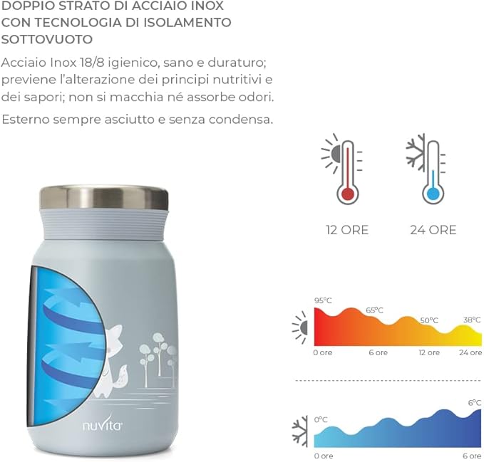 Nuvita 4472 | Thermos Bebe | Thermos Chaud Froid | Boite Repas Isotherme Enfant | Boite Isotherme | Thermos Bebe Biberon | Conservation Puree Bebe | Pot Isotherme Bebe | Thermos Alimentaire Enfant