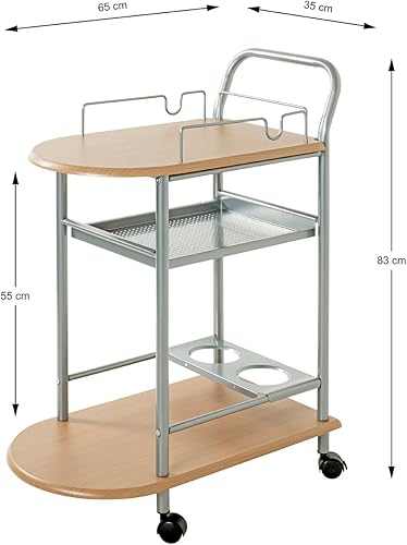 HAKU Möbel Chariot de Cuisine alu, hêtre, MDF, métal - Dim.: L 65 cm x H 83 cm x P 35 cm, Style: Modern