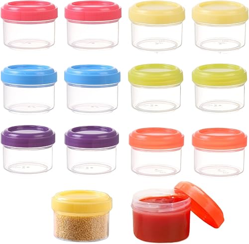Puedno Lot de 12 mini boîtes de rangement en plastique avec couvercles, 35 ml, réutilisables, pour aliments congelés, empilables, 6 couleurs