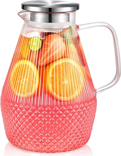 Carafe Eau, veecom 2,4 Litres Carafe Verre avec Couvercle, Pichet en Verre Borosilicaté avec Brosse, Pichet à Eau pour thé Glacé, Lait, Jus, Boisson Froide et Chaude