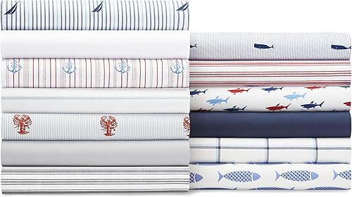 Nautica - Draps pour très Grand lit, Ensemble de literie en Percale de Coton, décoration d'intérieur décontractée (Bleu Marine, très Grand lit)