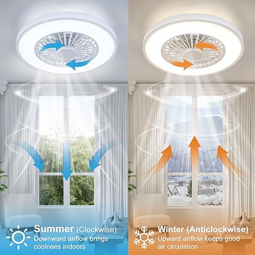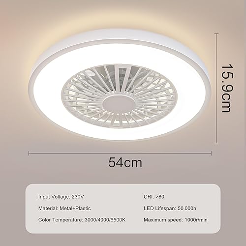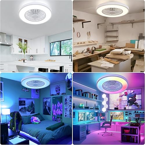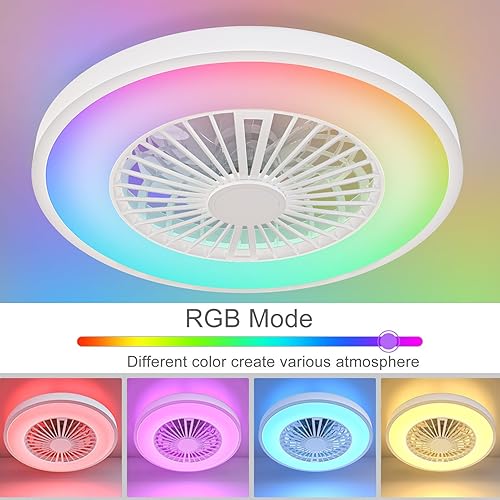 Ateroll Ventilateur de Plafond avec Lumière, Moteur DC 25W LED 45W, RGB(3000K-6500K), 3000LM, 6 Vitesses de Vent Réglables avec Télécommande, Minuterie, Mémoire de Lumière, 7 Ventilateur Réversibles