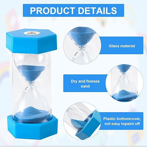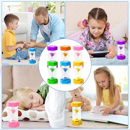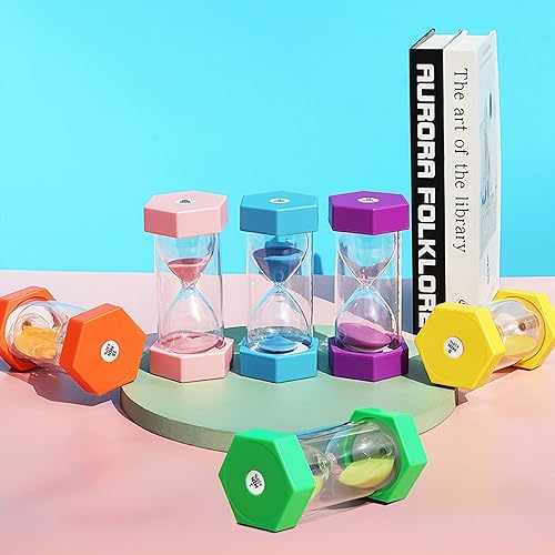 Druuzyl Sablier Minuterie Coloré, 6 Pcs Sabliers Minuterie Horloge de Sable Hourglass, Sabliers Colorés pour Enfants (1/3/5/10/15/30 Min) Sablier Colore kit pour Jeux,Cuisine, Exercice,Etude,Brossage