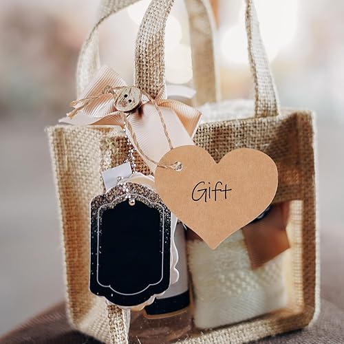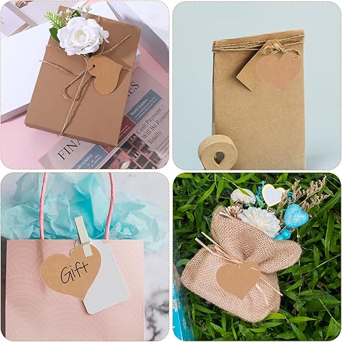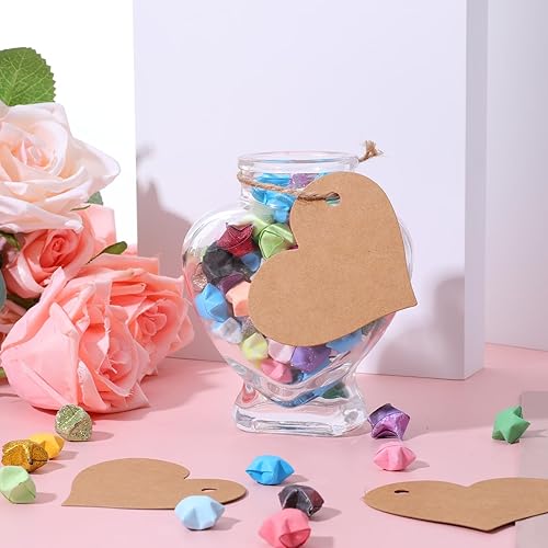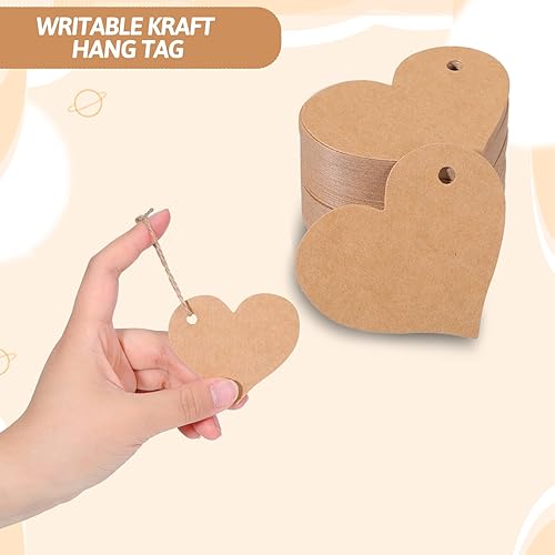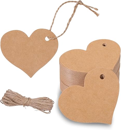 Lot de 100 étiquettes cadeaux en forme de cœur avec ficelle en papier kraft - 6,3 x 5,1 cm - Étiquettes vierges pour cadeaux de mariage, cadeaux pour anniversaire, Saint-Valentin, fête des mères