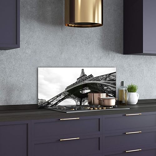 Tulup Crédence de cuisine 120x60cm Dosseret en verre Fond de hotte Verre de sécurité trempé Splashback Guard - Spectacles et architecture - Noir et blanc - Tour Eiffel Paris