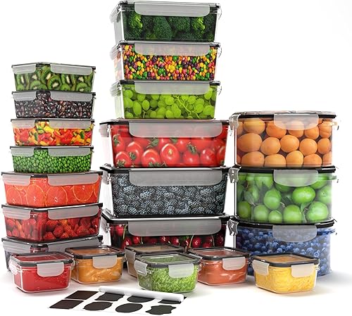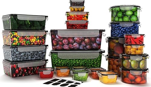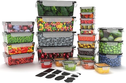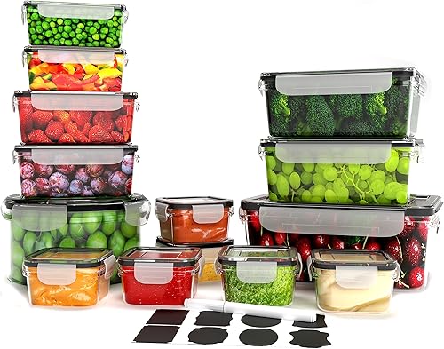 CARAMONT–40 Pièces Ensemble de Boîtes Alimentaire Frais(20 récipient,20 couvercle)-100% Étanche,adaptés au micro-ondes,Congélateur,Lave-Vaisselle-Sans BPA,Étiquettes, Marqueur,6 boîte de sauces inclus