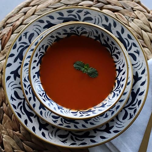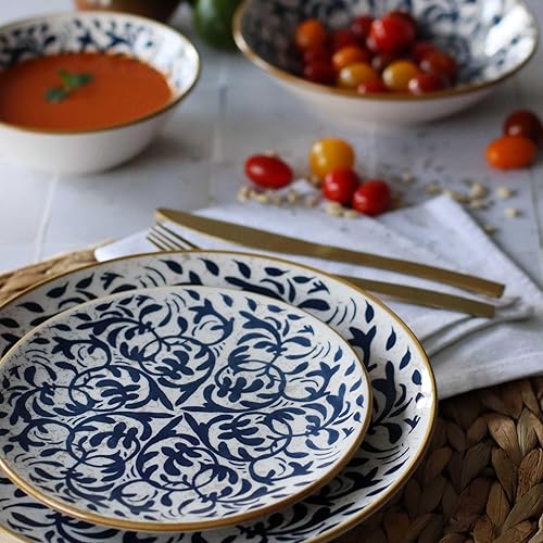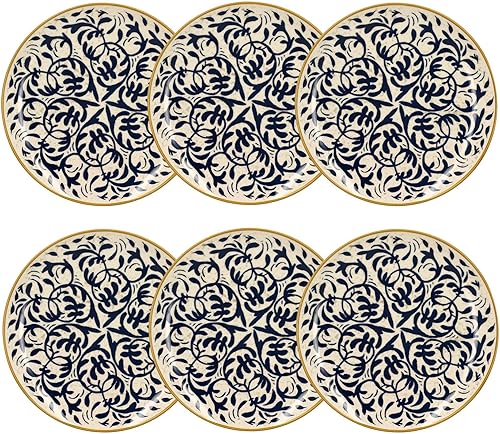 NOVASTYL - Lot 6 assiettes plates héraclée 27cm en grès décor bleu - 2614305